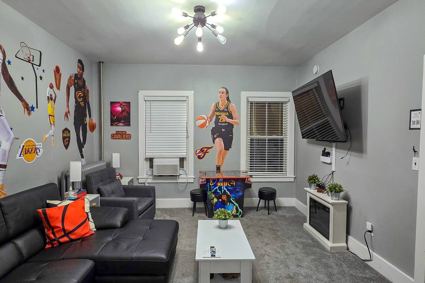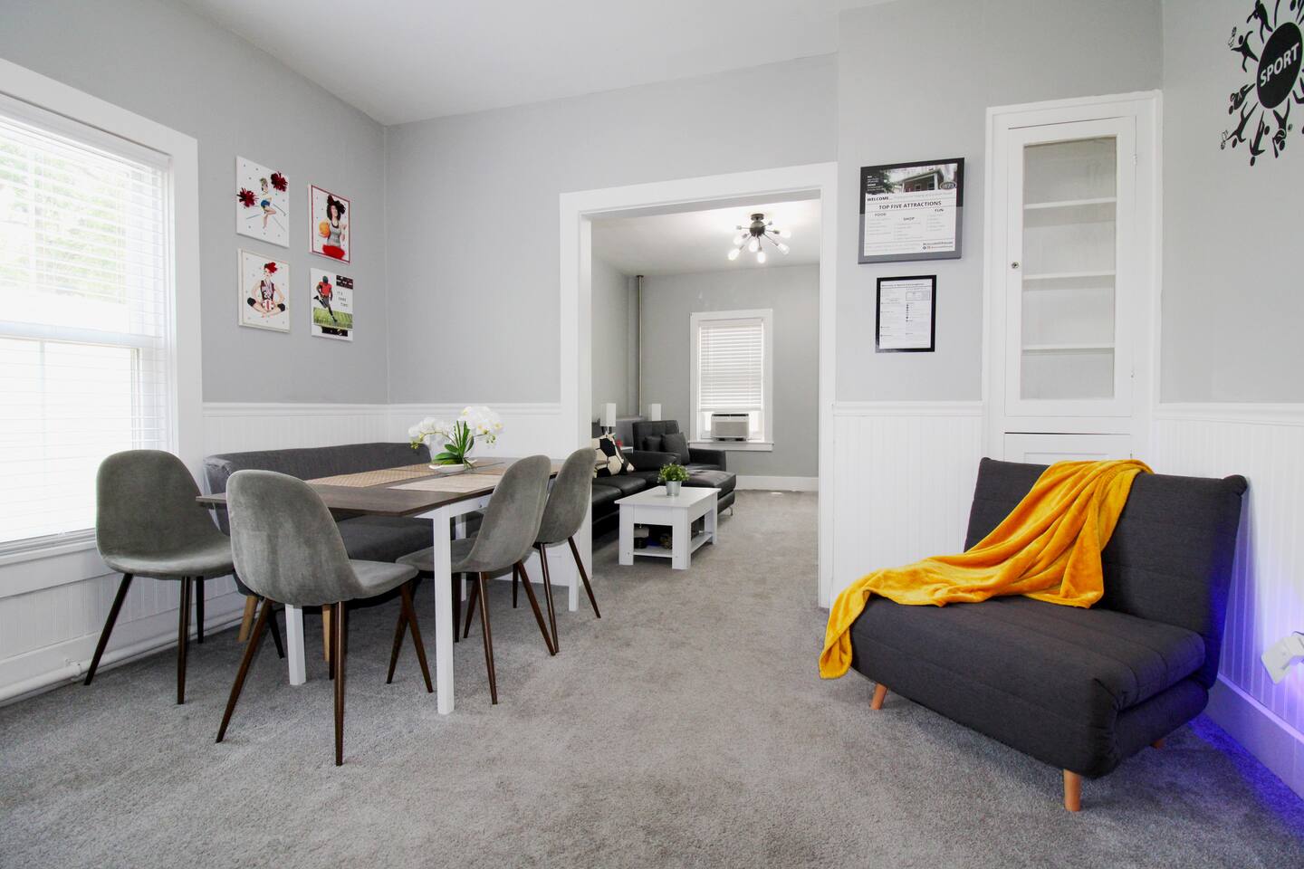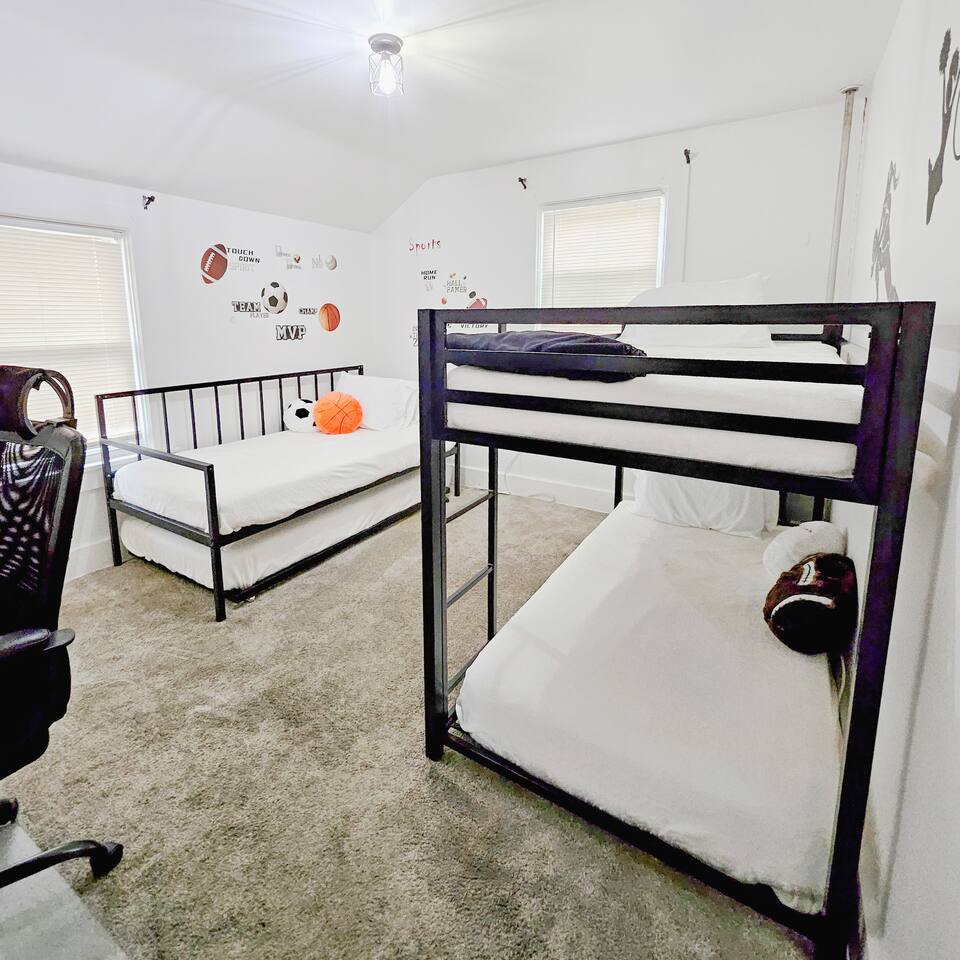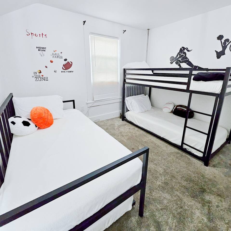 Join us in celebrating a major milestone: over 1900 nights hosted! Our experience ensures your stay is nothing short of perfect. Book your memorable getaway with us today! Location: The unit is located in a quiet corner of downtown historical Sandusky, minutes to shops and attractions, including water, wildlife, and amusement parks. Newly decorated and furnished! The unit has two bedrooms, a full bathroom, a family room, a formal dining room, a kitchen, and private entrance/access to the rear balcony. The apartment has stainless steel appliances, stove, water & ice dispensing refrigerator, garbage disposal, super fast free wifi, and 3 AC units. Accommodations & Amenities: Bedrooms: 4 twins bunk bed in the first bedroom (sleeps 4), a queen bed in the second (sleeps 2), and a twin convertible sofa bed in the dinning room (sleeps 1). Tech-Friendly: Enjoy 2 Smart TVs, a 50" TV in the living room, another one in the dining room and one in the small bedroom. Feel free to also log in to any of your streaming services on our TVs during your stay. Kitchen & More: Fully equipped kitchen, dining area, cozy living room, and convenient laundry facilities (downstair). LGBTQ+ friendly, welcoming guests from all walks of life. Themed Rooms for Every Taste: Choose from our six themed listings – Roller Coaster, Beach Oasis, Buckeye Sports, Rock N Roll, Sport Extravaganza and Wilderness Retreat – each offering a unique ambiance.