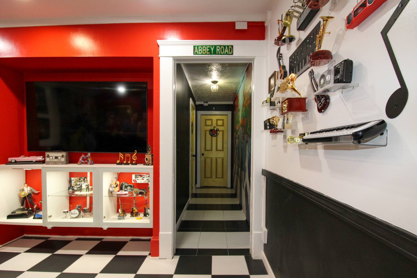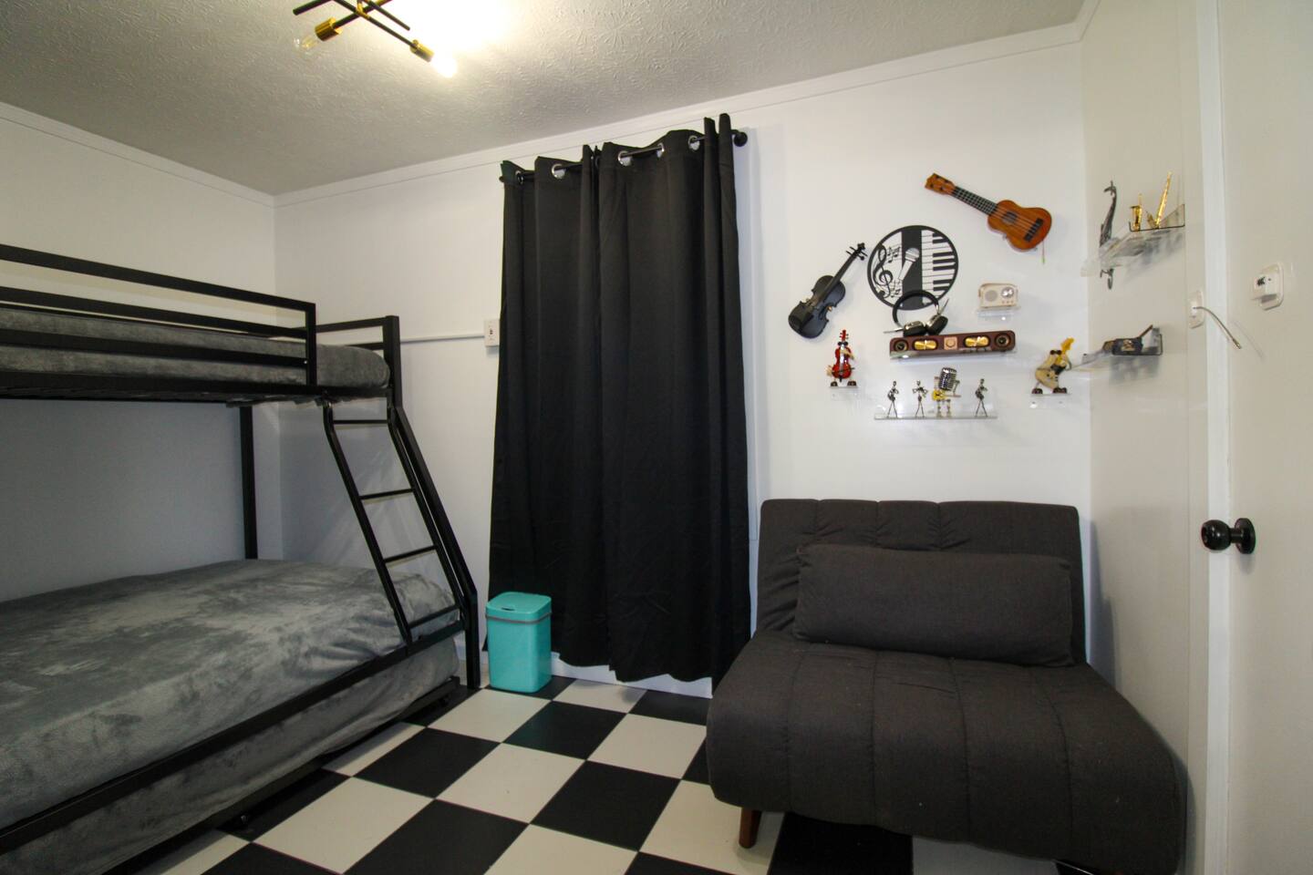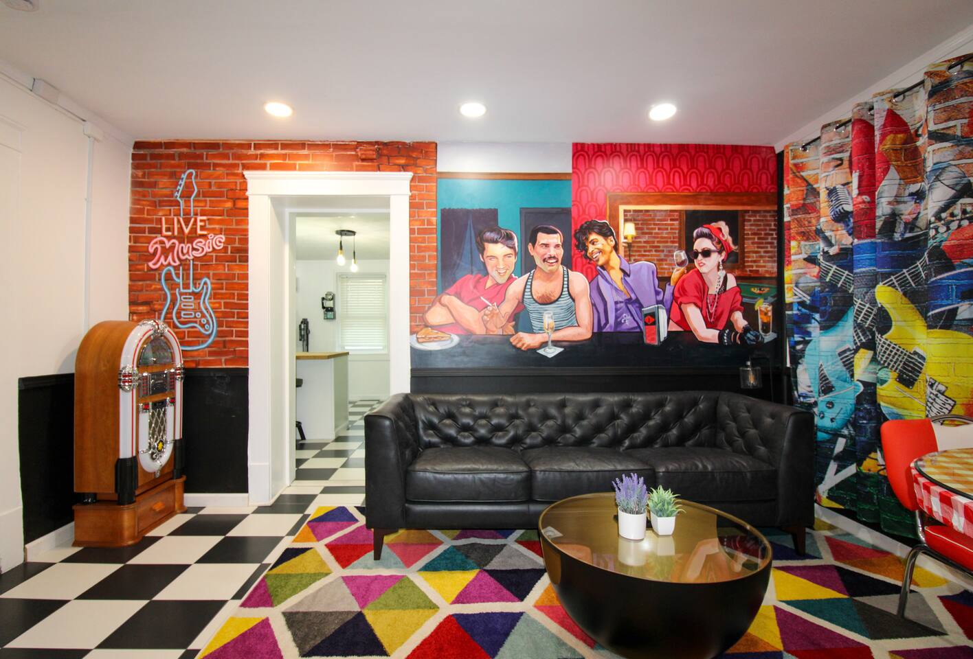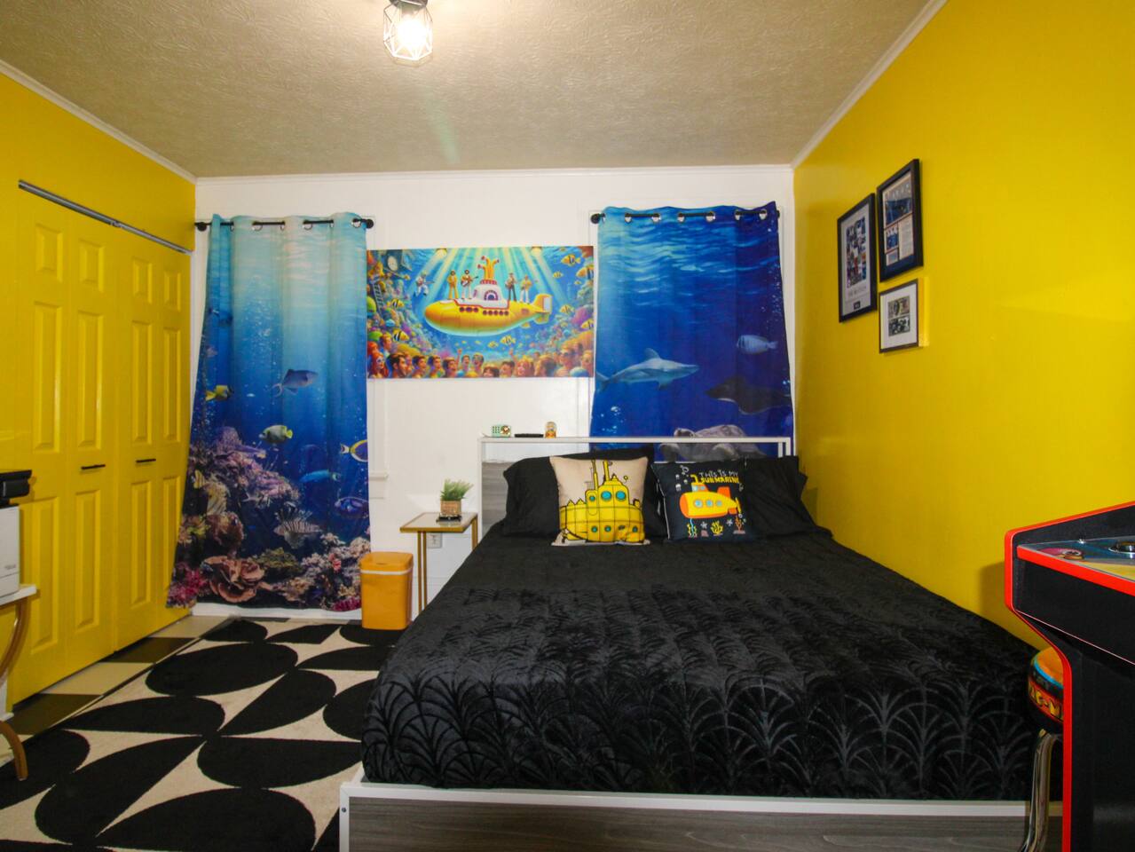 Join us in celebrating a major milestone: over 1900 nights hosted! Our experience ensures your stay is nothing short of perfect. Book your memorable getaway with us today! Accommodations & Amenities: Bedrooms: Elvis room with a king bed (sleeps 3), sofa bed, Yellow Submarine room with a queen bed and twin trundle (sleeps 3), and the last room with a twin bunk, full bunk base, and twin trundle (sleeps 6). Tech-Friendly: Enjoy 65" TVs in the living room and kids' room, with 43" TVs in the master and middle bedrooms. Kitchen & More: Fully equipped kitchen, dining area, cozy living room, and convenient laundry facilities. Parking Perks: Level 2 EV charging station available, along with easy access from the parking lot (just 12 steps to the 2nd-floor unit). Unique Features: Home to Sandusky's largest residential mural – a must-see! Located in the vibrant DORA zone, our property is within walking distance to the ferry, and close to an array of charming shops, lively bars, and delightful restaurants. Make the most of the local scene and, when you're ready to leave, simply request a DORA cup from any participating venue. This allows you to continue enjoying your beverage as you stroll back to our welcoming property. The apartment on the ground floor. It is one of the eight units and it is in the city zone so while you enjoy the convenience of downtown life and walking distance from shops and restaurants, do expect sounds from the neighborhood and neighbors. Each floor has 2 units so there are spaces you will be sharing a wall with next door. LGBTQ+ friendly, welcoming guests from all walks of life. Themed Rooms for Every Taste: Choose from our six themed listings – Roller Coaster, Beach Oasis, Buckeye Sports, Rock N Roll, Sport Extravaganza and Wilderness Retreat – each offering a unique ambiance.