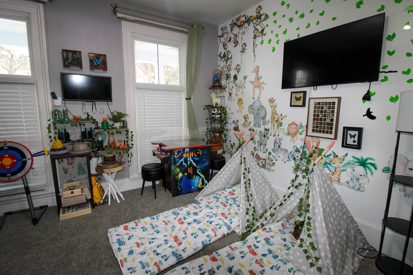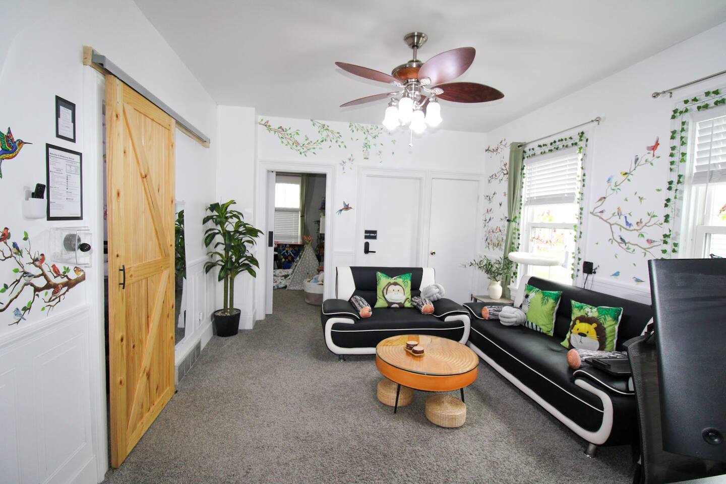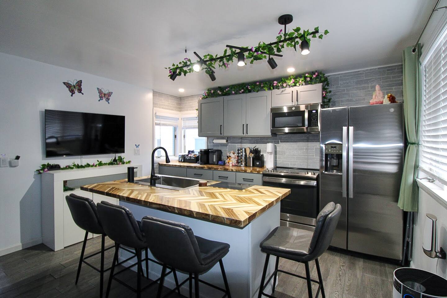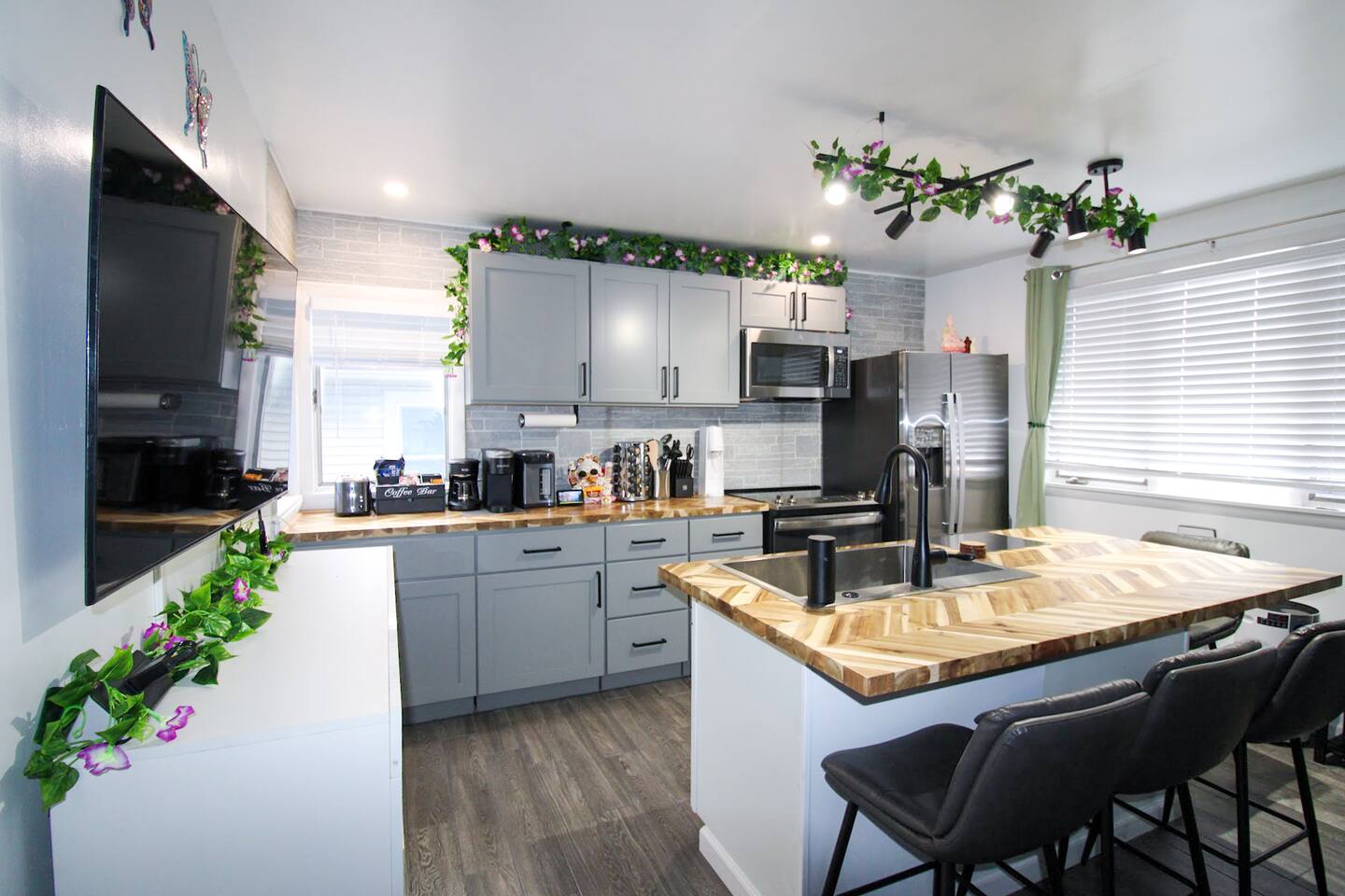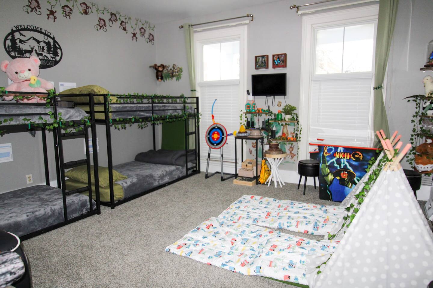 Join us in celebrating a major milestone: over 1900 nights hosted! Our experience ensures your stay is nothing short of perfect. Book your memorable getaway with us today! This cozy vacation home occasionally hosts us and our two friendly cats. If you have allergies, this might not be the best fit as we keep all cat-related items in place. For a cat-free option, check out our other listings—our cats haven’t visited those in months! 🐾 Location: The unit is located in a quiet corner of downtown historical Sandusky, minutes to shops and attractions, including water, wildlife, and amusement parks. Newly decorated and furnished! The unit has two bedrooms, a full bathroom, a living room, a kitchen, and private entrance The apartment has stainless steel appliances, stove, water & ice dispensing refrigerator, garbage disposal, super fast free wifi, and central air. Accommodations & Amenities: Bedrooms: 4 twins bunk bed (sleeps 4) and two kids floor mattresses (sleeps 2) in the first bedroom, a queen bed in the second (sleeps 2). Tech-Friendly: Enjoy 4 Smart TVs, a 55" TV in the living room, another one in the dining room, one in the kitchen and one in the small bedroom. Feel free to also log in to any of your streaming services on our TVs during your stay. Smart Toilet, Smart Faucet providing convenience for your stay. Kitchen & More: Fully equipped kitchen, dining area, cozy living room, and in-unit laundry. LGBTQ+ friendly, welcoming guests from all walks of life. Themed Rooms for Every Taste: Choose from our six themed listings – Roller Coaster, Beach Oasis, Buckeye Sports, Rock N Roll, Sport Extravaganza and Wilderness Retreat – each offering a unique ambiance.